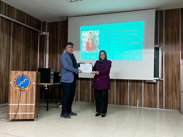 At the end of the program, a certificate of appreciation was presented to Dr. Seda Beyaz for her contributions.