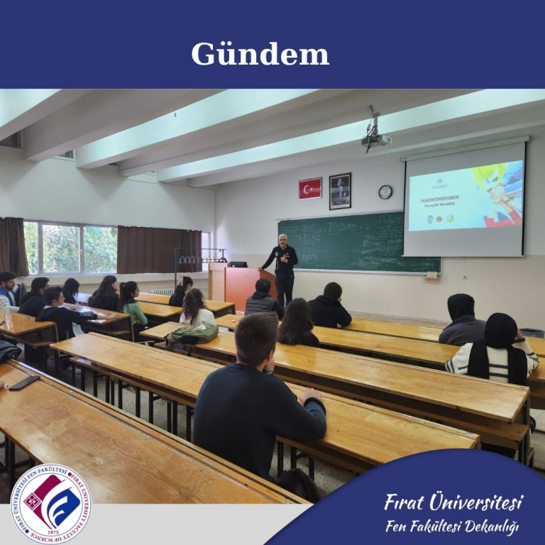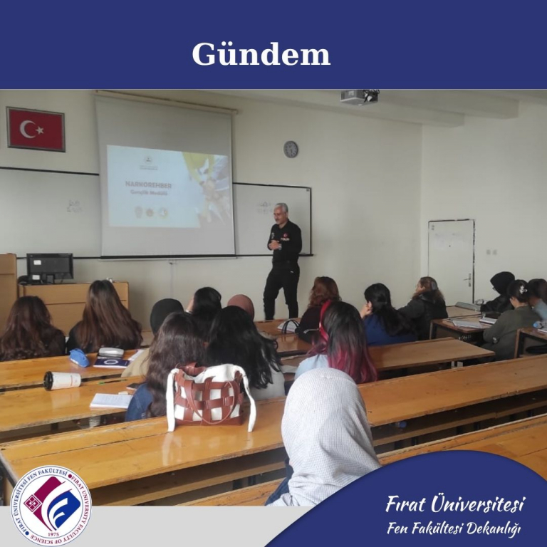 Elazığ İl Emniyet Müdürlüğü Narkotik Suçlarla Mücadele Şube Müdürlüğü tarafından, Fırat Üniversitesi Fen Fakültesi öğrencilerine yönelik “Uyuşturucu ile Mücadele ve Farkındalık Eğitimi” gerçekleştirildi.